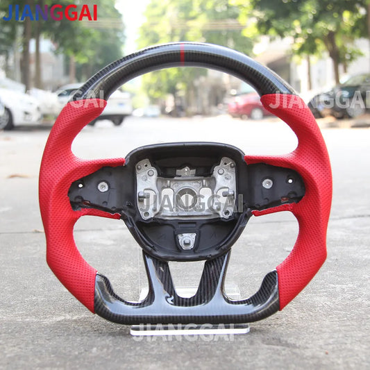 Led Steering Wheel Carbon Fiber Perforated Leather For Dodge Challenger Charger 2015-2018 Model